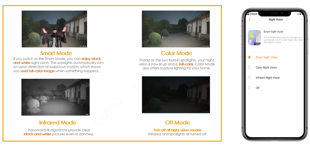 Patru moduri inteligente de vedere pe timp de noapte ofera imagini clare, color sau alb-negru, chiar si in intuneric complet.